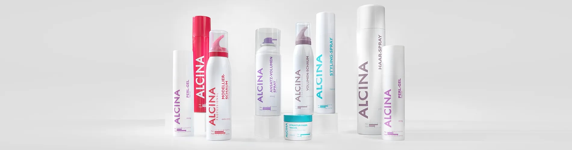 Alcina Professional includes all products for classic styling and finishing techniques. These include setting lotion, blow-dry lotion, hairspray, hair lacquer, and volumizing mousse.