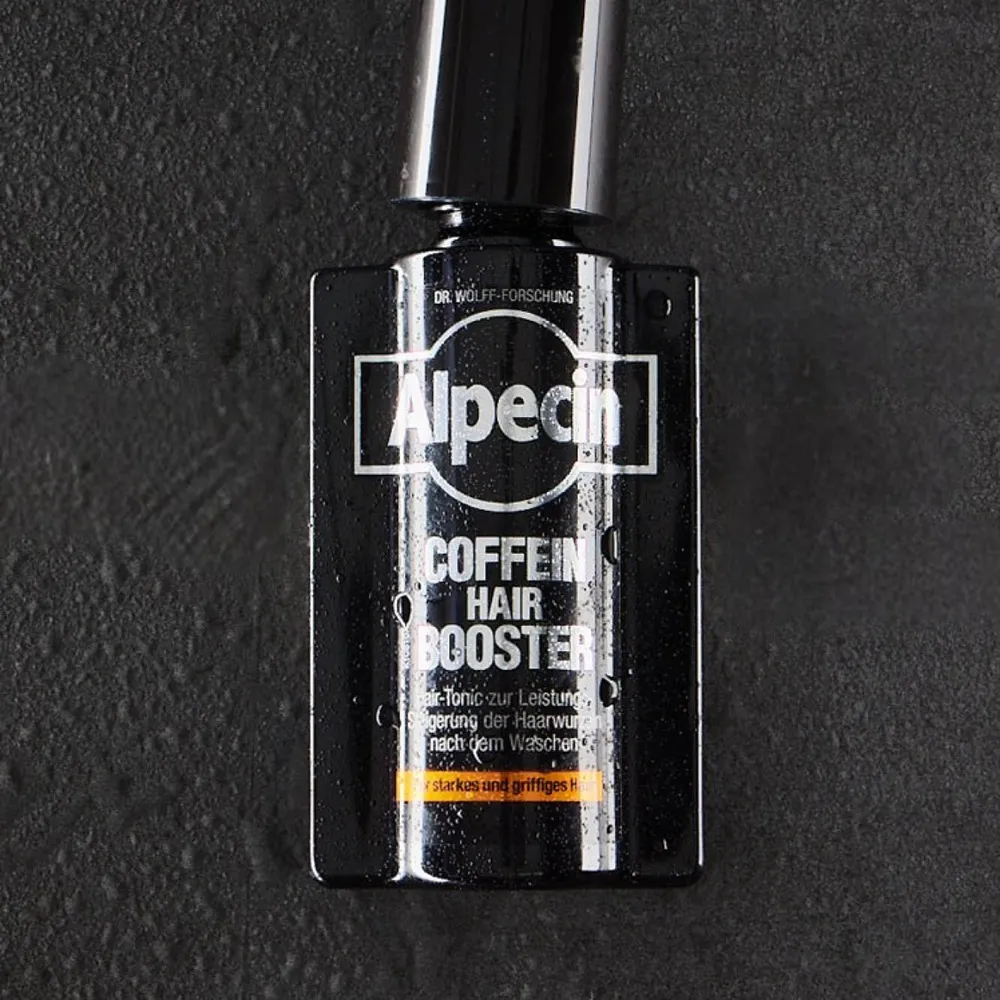 Alpecin Coffein Hair Booster is a highly effective hair tonic for enhancing hair follicle performance with the well-known Alpecin Coffein-Komplex. The strengthened hair follicles promote improved hair growth. Ideal for all men who want to take action against weakened hair and premature hair loss – for thicker, more manageable hair. Alpecin Coffein Hair Booster Effect The powerful formula works with caffeine, zinc, and niacin. Caffeine activates the hair follicles, prolongs the growth phases, and improves hair growth. It directly strengthens hair production at the hair root and increases active cells by up to 27%. Zinc and niacin are essential growth factors for healthy hair follicles. The hair follicle is stimulated, promoting healthy growth. The booster deposits a caffeine reserve at the hair root that works for 24 hours. Therefore, it is recommended to use the tonic daily to maintain the reserve. Immediately after application, the scalp feels refreshed. The Hair Booster has an elegant, masculine scent and comes in a modern design. Alpecin Coffein Hair Booster Application Apply once daily Distribute with the dosing tip along the parting across the entire scalp Allow to dry briefly Comb through Style as usual Alpecin Hair Booster Benefits Can be used together with styling products Best used with Alpecin Shampoo but can also be combined with other products Easy to apply Only once daily Can be applied to towel-dried and dry hair Immediate feeling of freshness