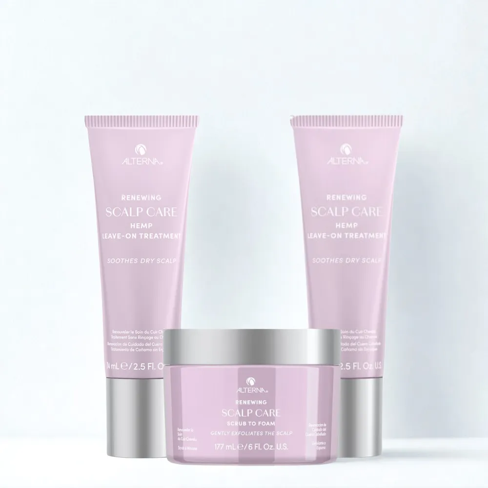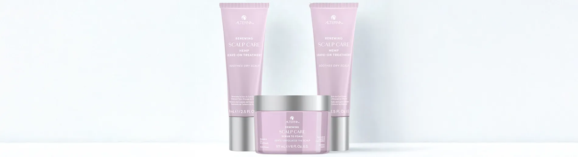 - Then use one of the two leave-on scalp treatments. Alterna Renewing Scalp Care Hamp Leave-On Treatment leaves the scalp feeling calm, soothed, and less dry, while Alterna Renewing Scalp Care Peppermint Leave-On Treatment helps maintain the scalp’s moisture balance.