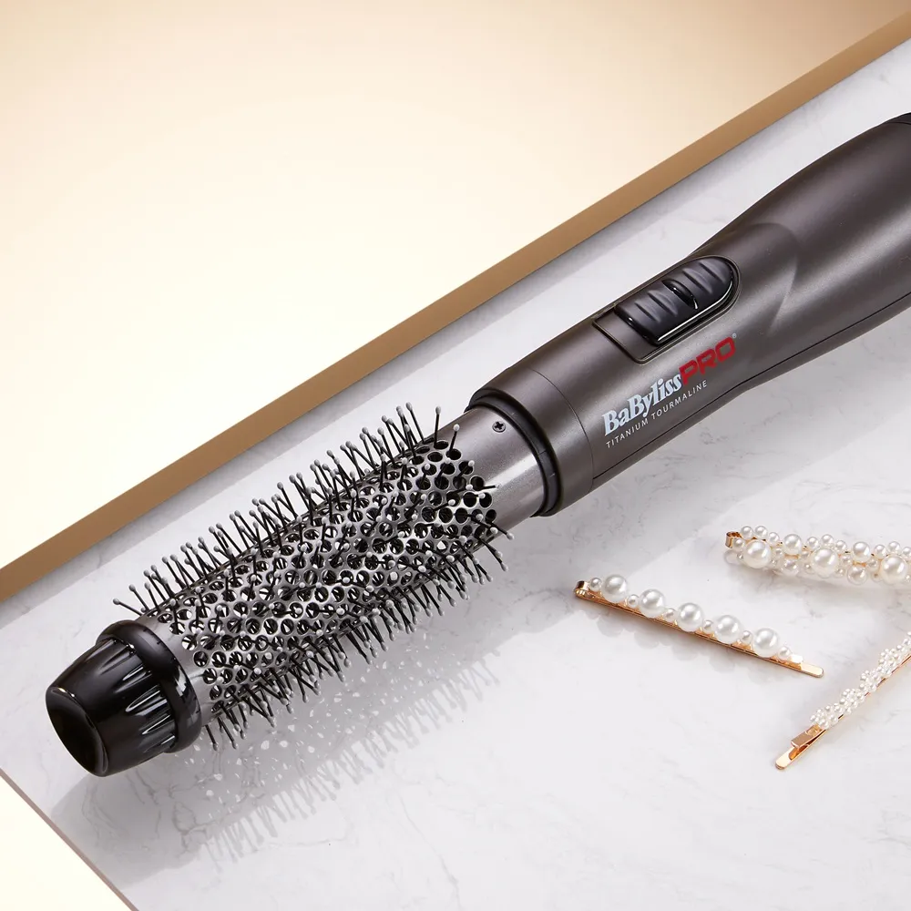 BaByliss Pro hot air brushes combine a hair dryer and a brush in one device. Hot air flows directly through the round brush, allowing the hair to be easily shaped into curls or smoothed while drying.