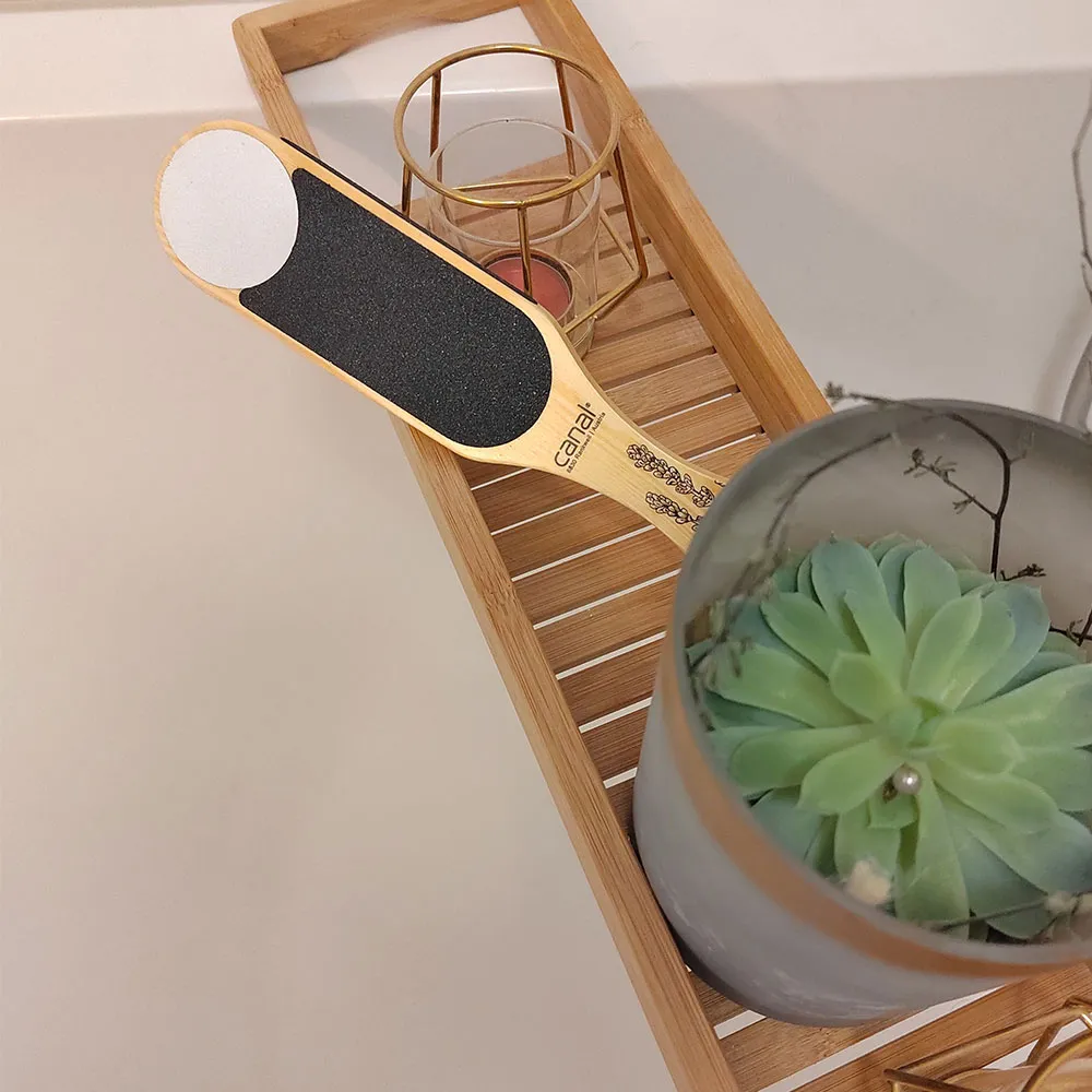 The Canal Foot File With Wooden Handlenatur with wooden handle 23 cm features two abrasive surfaces for removing calluses. The file can be used wet and dry, providing instant beautiful feet. The abrasive surfaces ensure quick removal without irritating the skin. Canal Foot File with wooden handle 23 cm Features The callus file with coarse and fine sides is equipped with a sturdy beechwood handle for optimal comfort during use. It is hygienic, as it is washable, and made from FSC-certified wood.