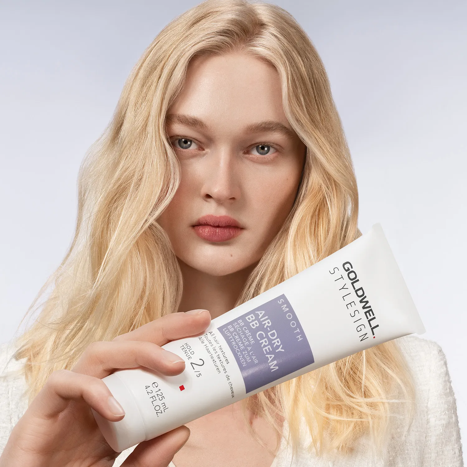 Goldwell Stylesign Smooth Air-Dry BB Cream is ideal for air-drying but can also be used with a blow dryer thanks to its integrated heat protection. The cream is your gamechanger when time is limited in the morning. It provides immediate care and prevents frizz for smooth, controlled, and healthy-looking hair, all without heat from a blow dryer. Suitable for all hair textures. Packaging Highlights of Goldwell Stylesign Smooth Air-Dry BB Cream 27% of packaging made from PCR Weight-reduced packaging Application of Goldwell Stylesign Smooth Air-Dry BB Cream Work into towel-dried or dry hair.