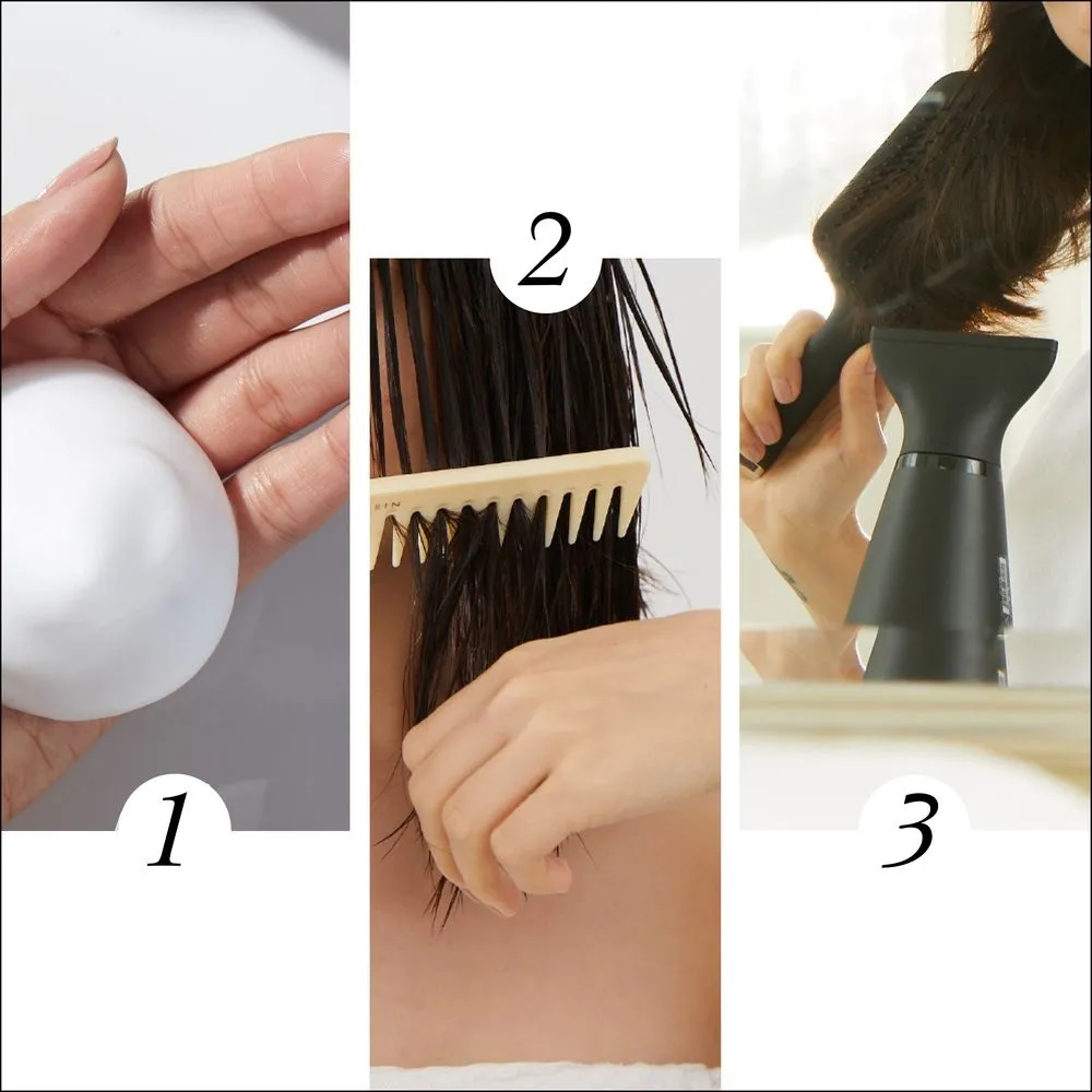 We recommend distributing it evenly from the roots to the ends, then styling your hair with a blow dryer and brush. For extra volume, blow-dry your hair upside down. If you have natural curls, it’s best to use a diffuser.