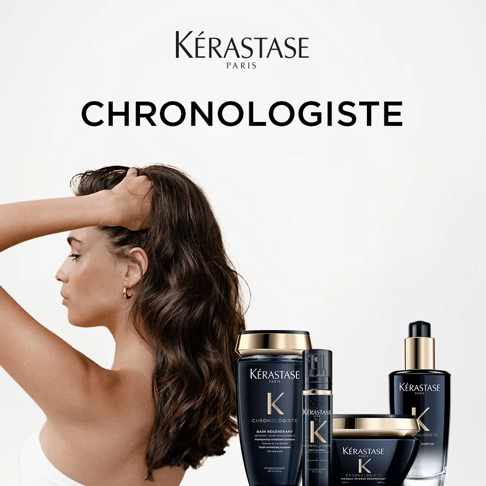 Kérastase Chronologiste is the most luxurious line with the most precious ingredients, for holistic regenerating scalp and hair care. Chronologiste soothes irritations, strengthens the hair, and provides exceptional shine in the lengths.
