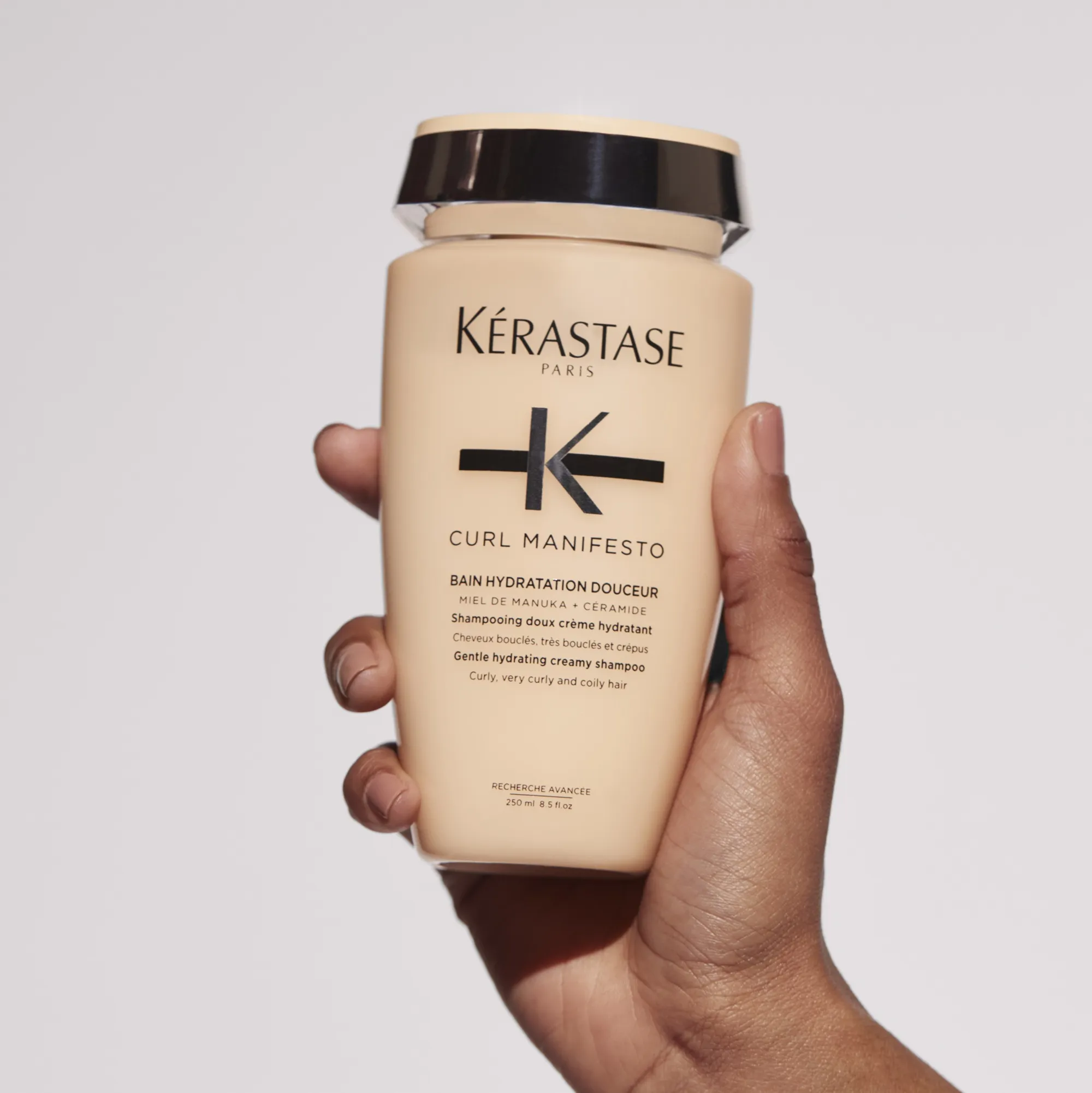 Kérastase Curl Manifesto Bain Hydratation Douceur is a luxurious creamy shampoo for curly and unruly hair. It deeply hydrates, nourishes your hair and gently cleanses. This luxurious shampoo by Kérastase contains ceramides and Manuka Honey. Ceramides function as a binding substance, creating a natural barrier to keep hair from drying out. Manuka Honey is a traditional remedy said to have antibacterial effects. The shampoo provides a particularly gentle cleansing of your scalp and hair and removes excess sebum and build-up while maintaining the natural lipid balance of your scalp. Kérastase Curl Manifesto Bain Hydratation Douceur provides intense hydration with no weigh down. It leaves your curls glossy and perfectly defined. Apply to wet hair, emulsify and massage in. Rinse thoroughly.