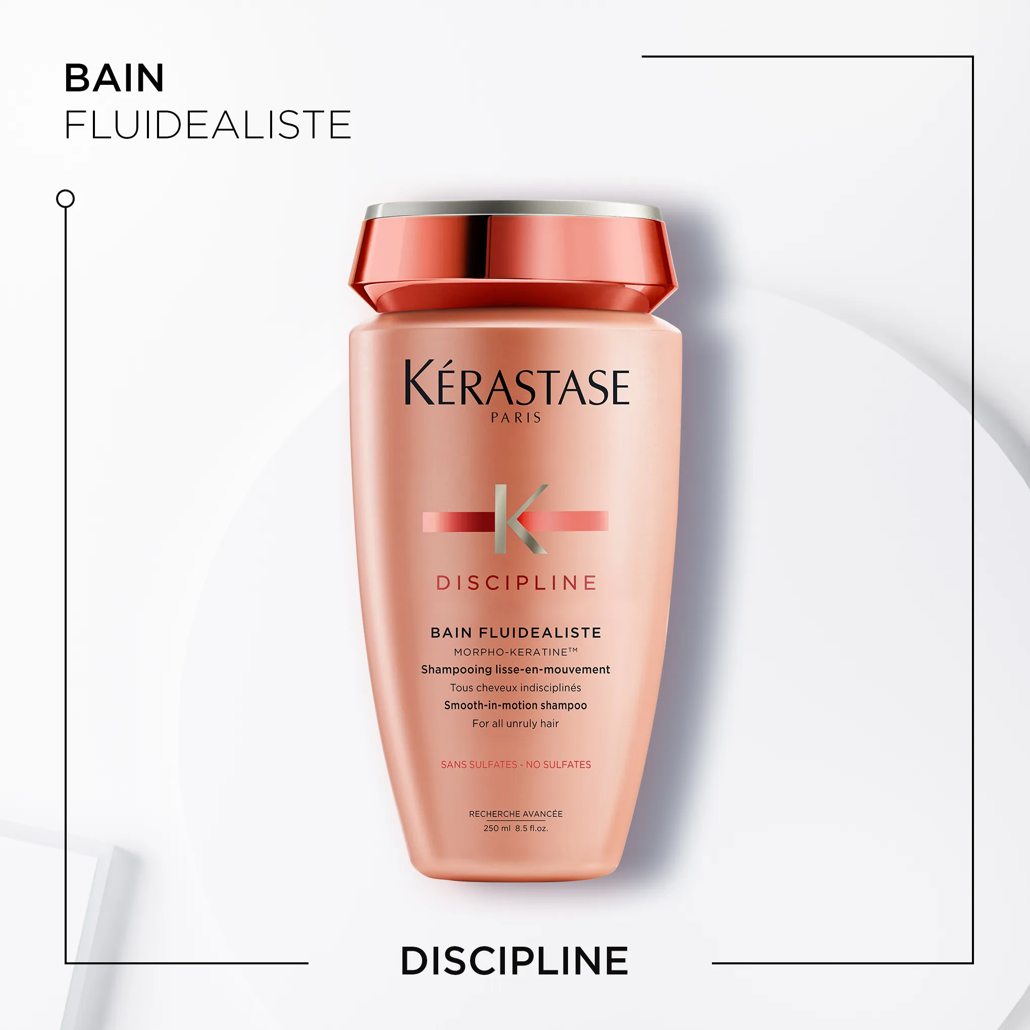 Fine to normal unruly hair is perfectly tamed with the Discipline Bain Fluidealiste. This hair bath contains hair-strengthening keratin to regenerate the fiber and reduce frizz. The result: smooth, controlled hair.