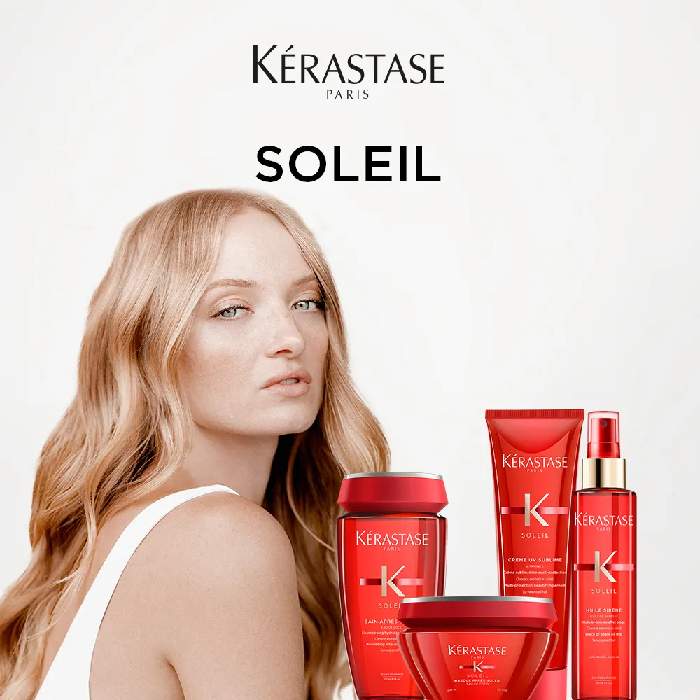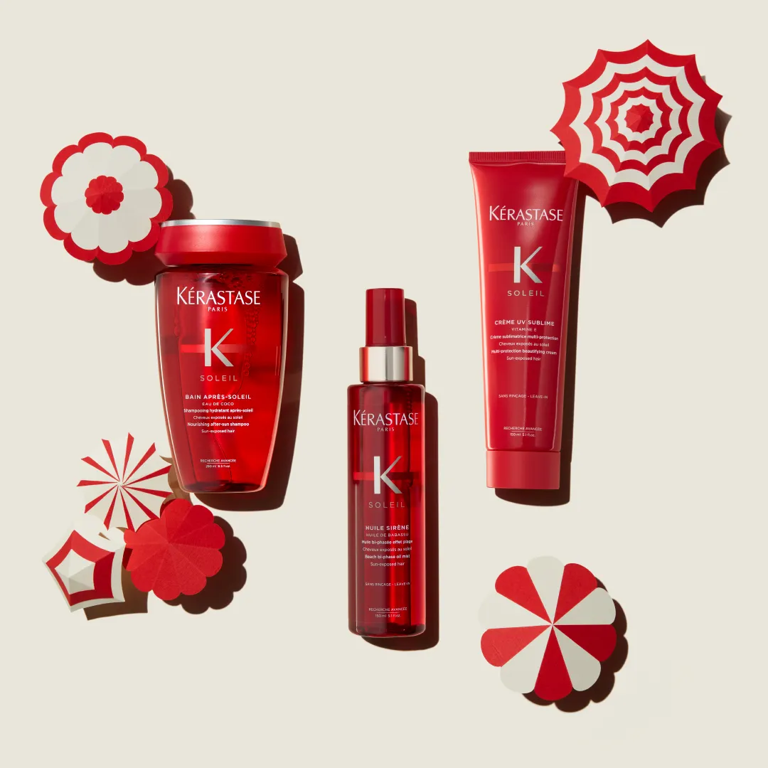 - After sun exposure, wash your hair with Kérastase Bain Après-Soleil to remove chlorine, salt, and sand while providing moisture.