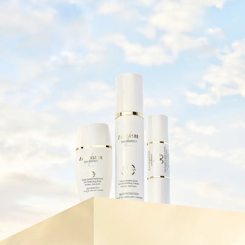 Lancaster Sun Perfect is the innovative sun care line that combines comprehensive sun protection with highly effective skincare. Four powerful sun care products for the face and décolleté provide luxurious protection that counteracts wrinkles and dark spots while enhancing the skin’s radiance.