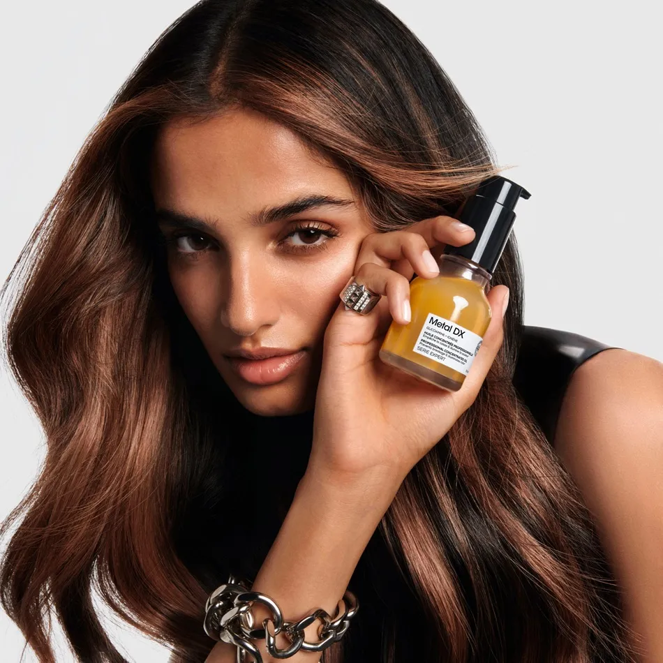 Worried about unwanted color shifts after balayage, ombré, and similar treatments? Metal DX removes metal deposits from the hair and protects against color changes after coloring services.