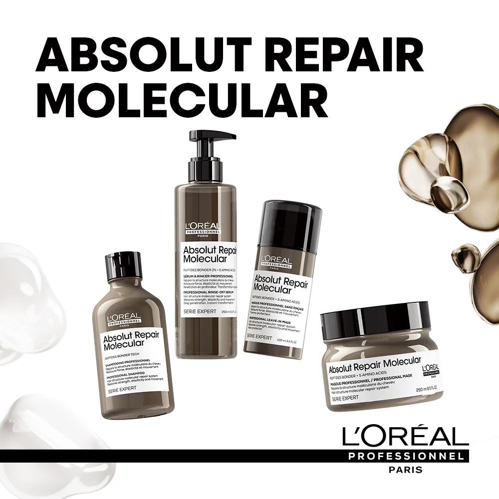L’Oréal Professionnel Série Expert Absolut Repair Molecular was specially developed for severely damaged hair. With just one application, the hair becomes healthier, shinier, and more beautiful!*