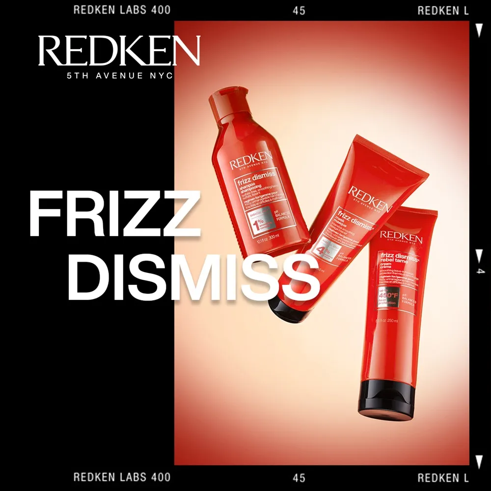 Redken Frizz Dismiss combats frizz across all hair types. Dry, brittle, and fragile hair is nourished and protected from humidity.