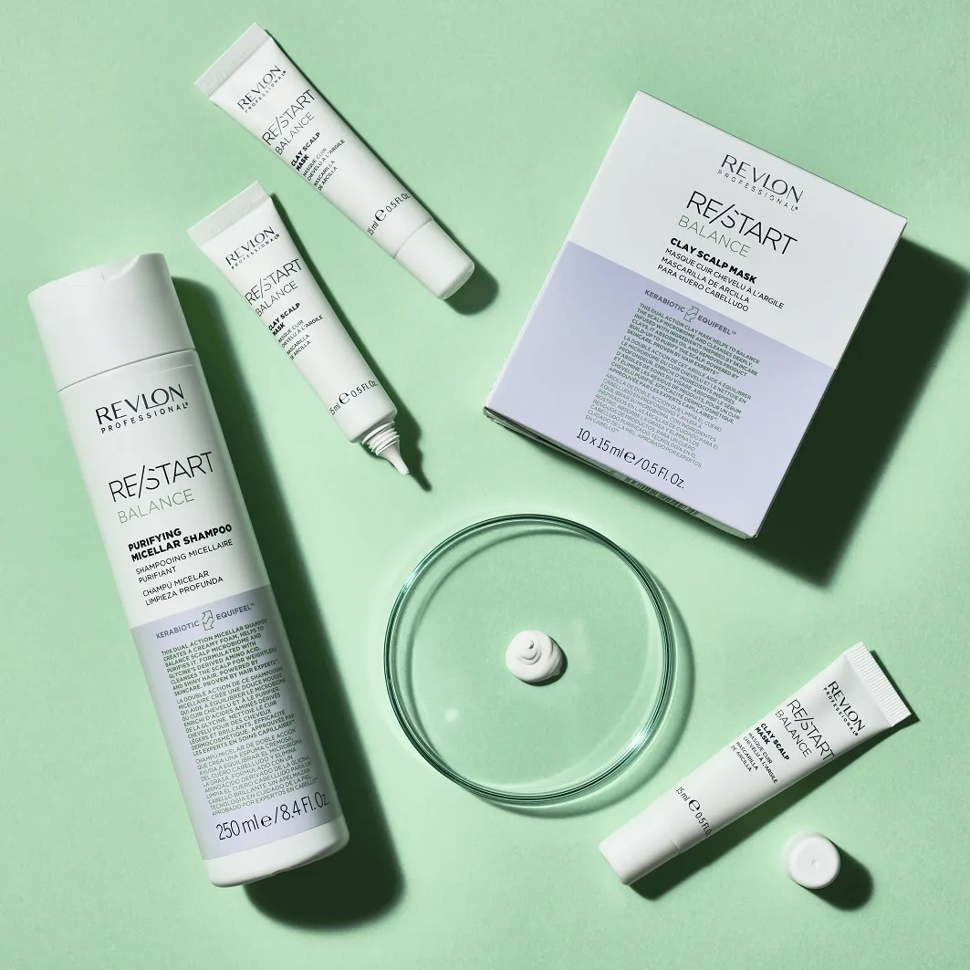 Revlon Restart Balance Clay Scalp Mask is a clay-based scalp mask. It is ideal for those with an balanced and oily scalp. The scalp is thoroughly cleansed and the microbiome is balanced. Unpleasant odors are neutralised. Active ingredients in Revlon Restart Balance Clay Scalp Mask The special effect on the scalp is achieved through proven skincare ingredients. These include natural Kaolin and clay. Application of Revlon Restart Balance Clay Scalp Mask The product is applied section by section to damp or dry scalp. Then gently massage in. Leave on for 5-10 minutes. Rinse thoroughly. Wash out with shampoo.