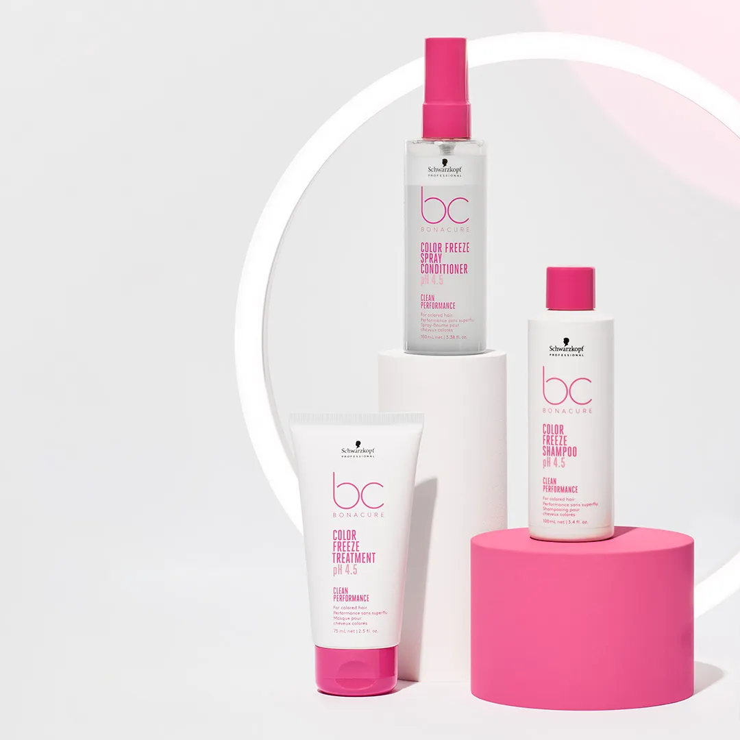 The products from Schwarzkopf Bonacure Color Freeze are free from animal-derived ingredients, sulfates, silicones, artificial colorants, parabens, mineral oils, phthalates, and microplastics.