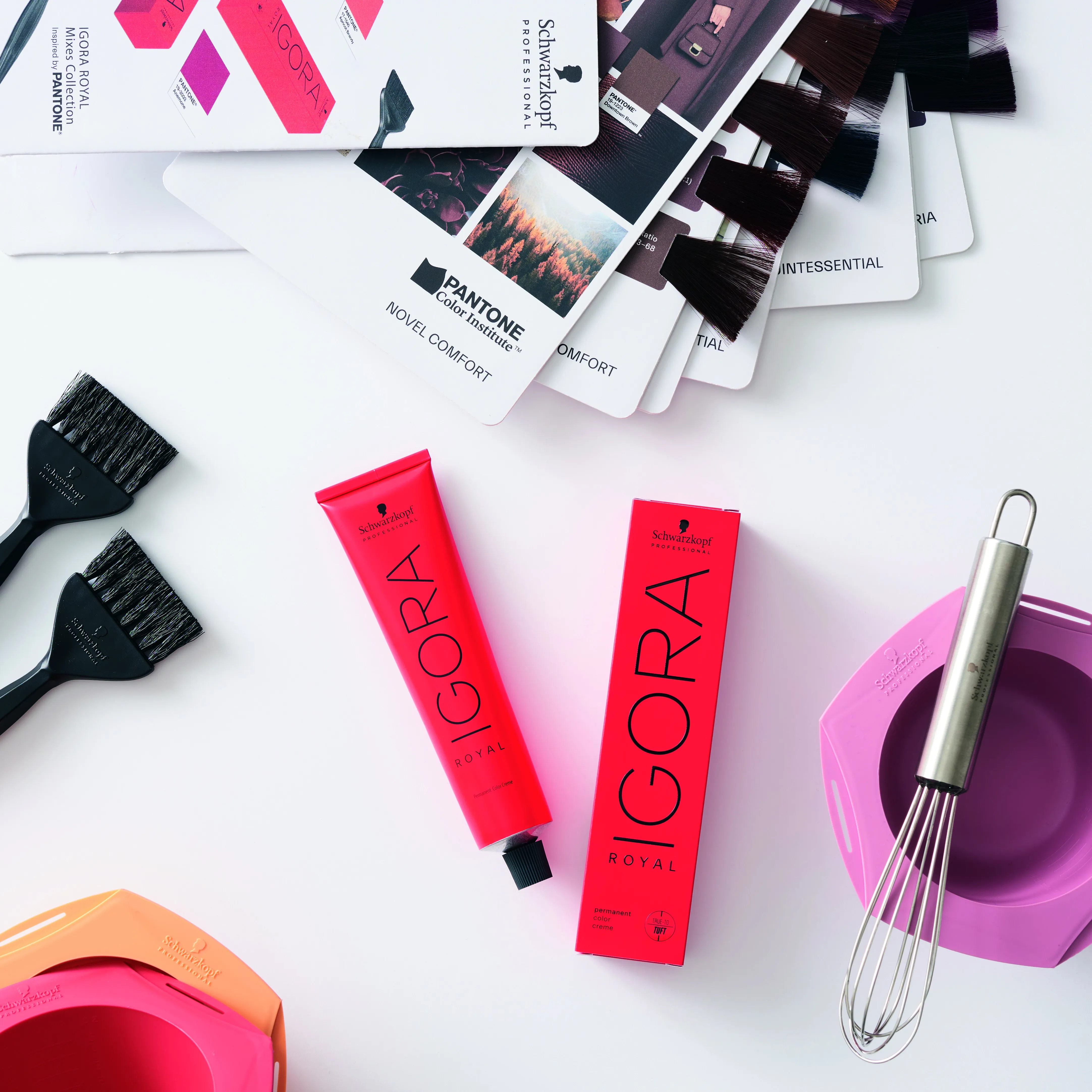 The High-Definition Igora Royal hair colours are permanent hair colours available as classic Igora Royal colour cream for all hair types. For more mature hair with increased grey and white content, the following variants are available: Schwarzkopf Igora Royal Absolutes, Schwarzkopf Igora Royal Absolutes Silverwhite, and Schwarzkopf Igora Royal Absolutes Age Blend. For those who love cool and powdery tones, there are special editions such as Schwarzkopf Igora Royal Earthy Clay, Schwarzkopf Igora Royal Ashy Cedar, and Schwarzkopf Igora Royal Nude Tones. To create extremely cool blond tones, there are Schwarzkopf Igora Royal Highlifts, and for sandy beige tones, the Igora Royal Muted Deserts.
