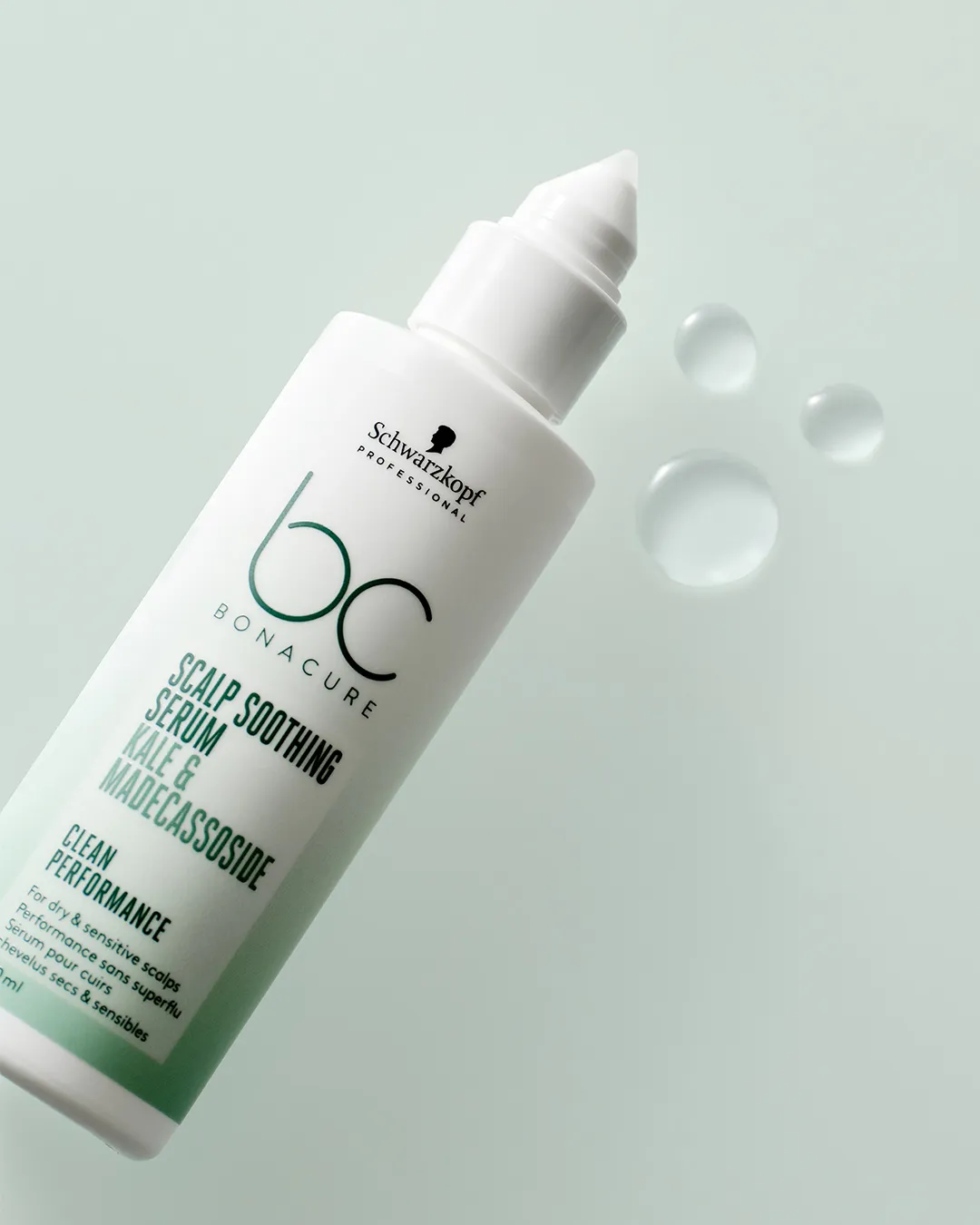 Schwarzkopf BC Scalp Soothing Serum soothes dry, sensitive, and irritation-prone skin. The formula with kale and Madecassoside helps to nourish the scalp with essential nutrients and improve the skin's moisture content. It relieves and protects the skin from dryness, itching, and sensitivity. The non-greasy formula absorbs quickly into the scalp and leaves a relaxed, nourished feeling. Suitable for daily use.ApplicationApply to affected areas, gently massage in, and do not rinse out.