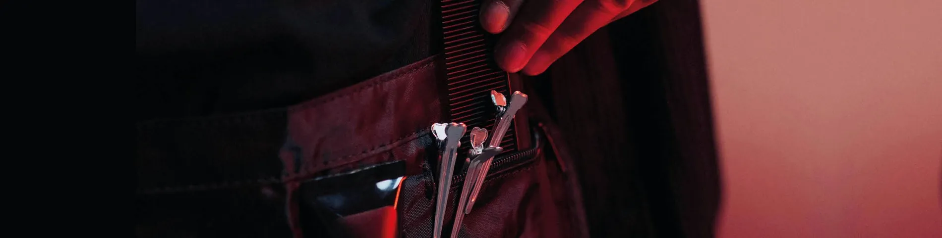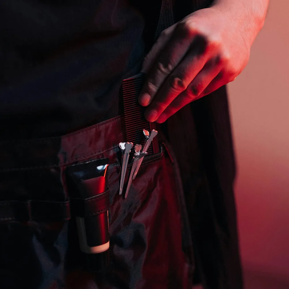 To keep hairdressing scissors, brushes, and combs, as well as smaller work materials like hair accessories, always within reach during the workday, tool bags are very popular among hairdressers. Hairdresser tool bags are available in many different designs, allowing each hairdresser’s individual working style to be supported in the best possible way. They can be worn on the belt or directly on the body and feature pockets for the most important hairdressing equipment.