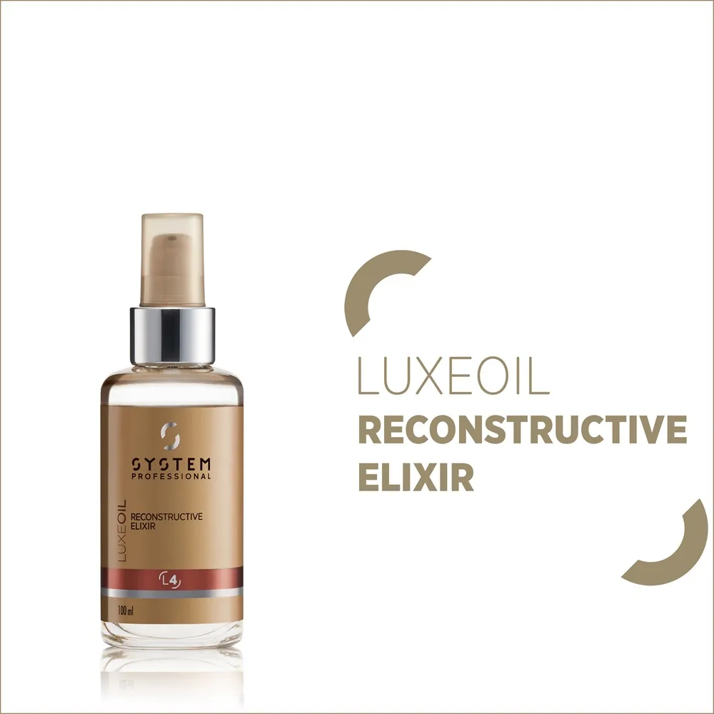 System Professional Lipid Code LuxeOil Reconstructive Elixir protects hair keratin and provides immediate smoothness for up to 100 hours*, 24-hour radiant shine, and up to 99% less hair breakage**. System Professional Lipid Code Luxeoil Reconstructive Elixir Benefits: Ensures long-lasting smoothness, shine, and definition Protects keratin from mechanical stress System Professional Lipid Code Luxeoil Reconstructive Elixir Formulation Highlights: Suitable for all hair types. Also ideal for fine hair Up to 86% more shine*** Works in conjunction with any System Professional Mask to additionally rebuild the hair and provide a luxurious hair feel Offers UV protection for a beautifully reflective finish System Professional Lipid Code Luxeoil Reconstructive Elixir Application The hair oil can be applied in 3 different ways: As a care additive to the mask: apply 10 pumps with any System Professional mask and leave for 5-10 minutes As a styling and protective product: apply 4-5 pumps to towel-dried hair before blow-drying As a daily finishing product: apply 4-5 pumps to the finished styled hair * Compared to untreated hair. ** Keratin protection for instant, weightless smoothness and brilliant shine. *** Compared to a non-conditioning shampoo.
