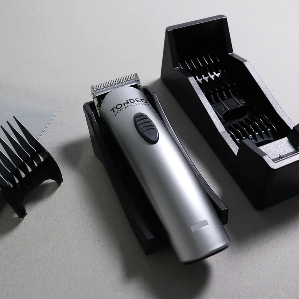 The Tondeo ECO S Plus is an exceptionally lightweight hair clipper, perfectly suited for contour cutting. Professional work becomes easy and precise thanks to the 30mm cutting head and the 4-stage comb attachment. Powerful like a clipper but as manageable as a trimmer, handling is simple due to its ergonomic design. The Easy-Cleaning function, quick-change cutting plates system, and durable battery make the Tondeo ECO S Plus a comfortable hair and beard trimmer. The hair clipper has a short charging time of 6-8 hours. Here, you get high performance at a small price and even lighter weight – barely more than a comb and scissors combined! Application Recommendation The 30 mm cutting head with comb attachment for 3 / 4.5 / 6 / 7.5 mm is suitable for a variety of short hairstyles, whether men's cuts or creative short women's hairstyles. The Tondeo ECO S Plus can be seen as a modern alternative to scissors. It allows for particularly easy and precise outlining. The hair clipper is perfect for creative hairstyles and pattern cutting. With the attachments, longer hair and beards can also be cut. For longer hairstyles, additional combs should be used, while for short cuts, work is done directly with the clipper attachments. Without attachments, the Tondeo ECO S Plus is ideal for contour cutting.