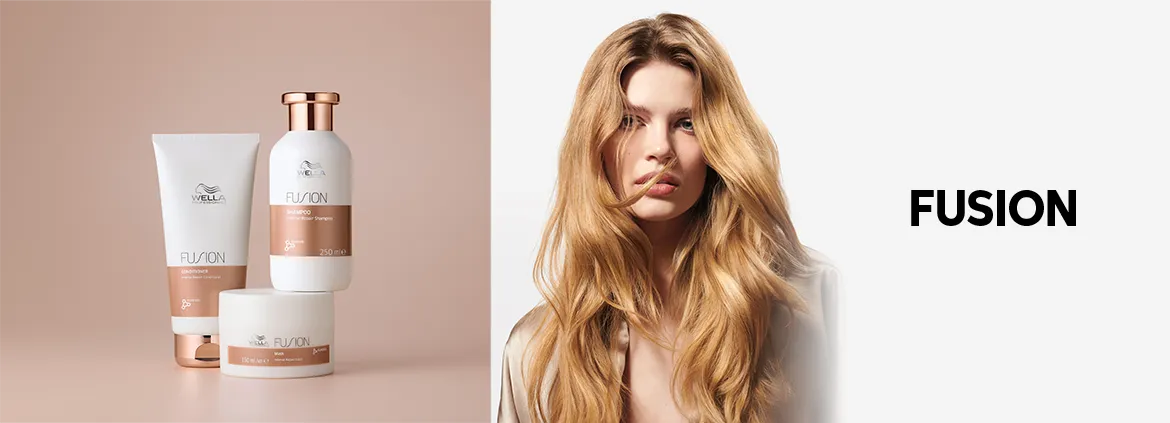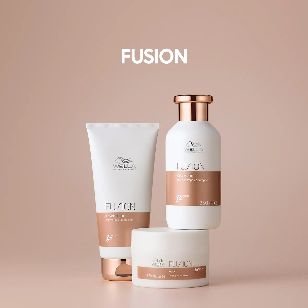 Wella Fusion is the intensive repair program designed especially for stressed hair. The products provide deep repair and the smoothness your hair craves. Wella Fusion works with the innovative Silksteel Technology to instantly restore the hair fiber on both micro and macro levels, reducing hair breakage by up to 95%*.