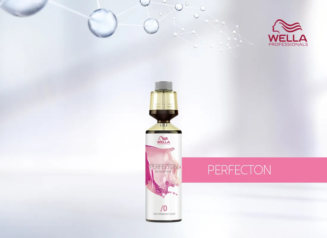 Wella Perfecton is a color rinse that remains in the hair and can be used in many ways for color refreshment, tone correction, or highlighting. It is a direct dye with a care complex that provides vibrant color and radiant shine.